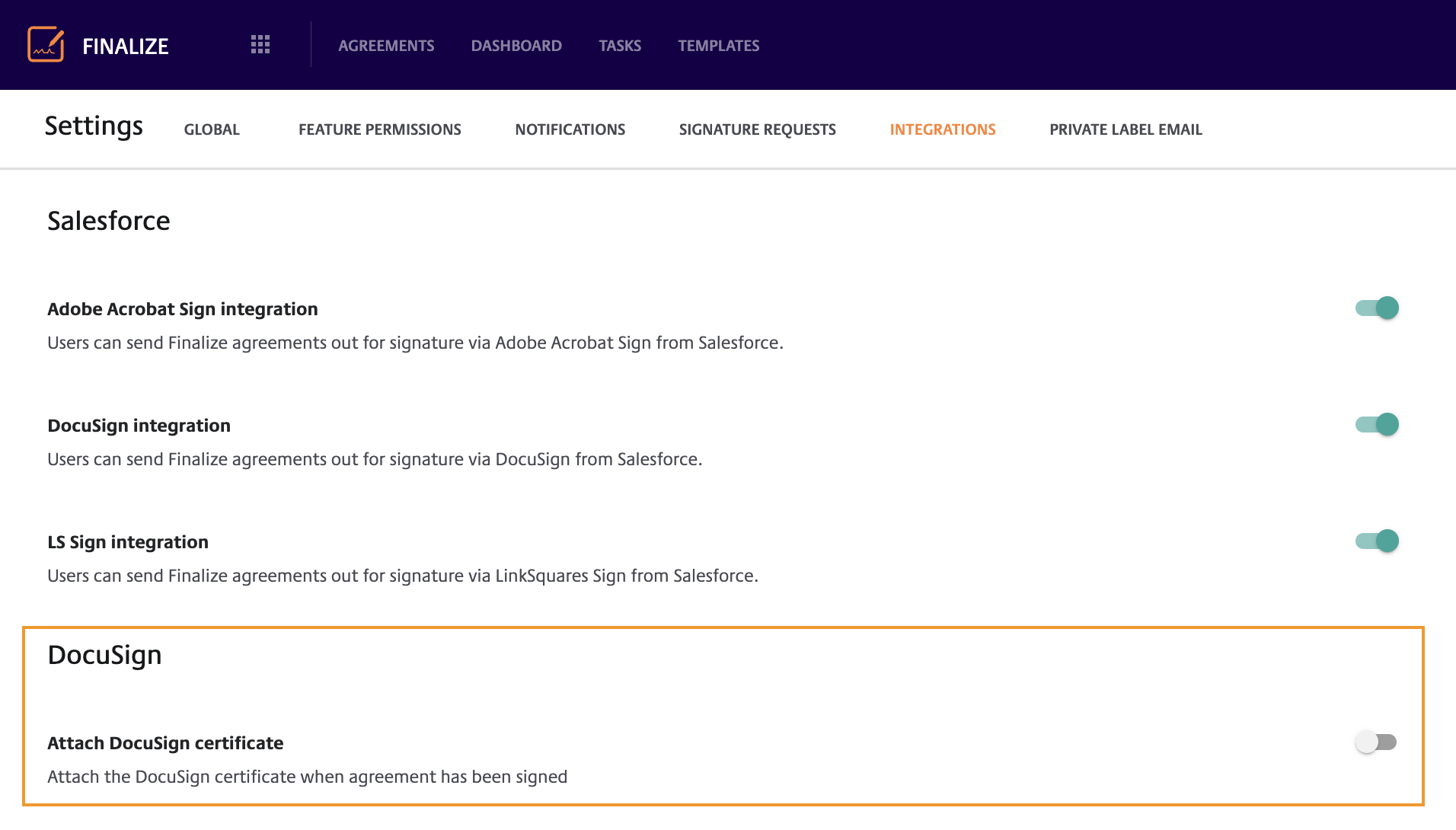 Finalize's DocuSign integration enables you to send one or multiple agreements for signature.