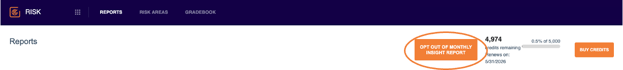 To opt-out of the email, navigate to the Risk Tab, and select “Opt Out of Monthly Insight Report.”