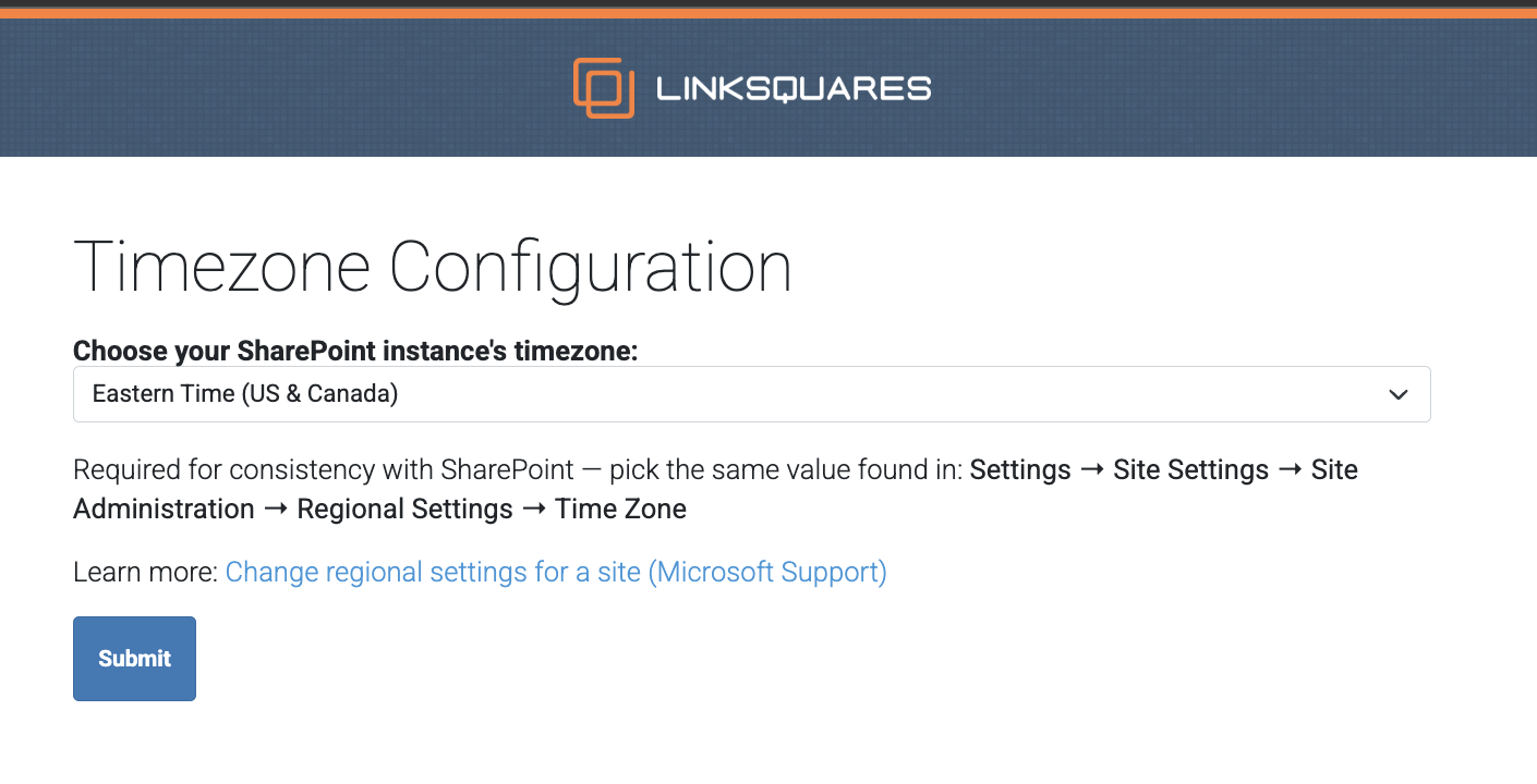 Selecting a time zone is required. For more information regarding time zone selection: HERE