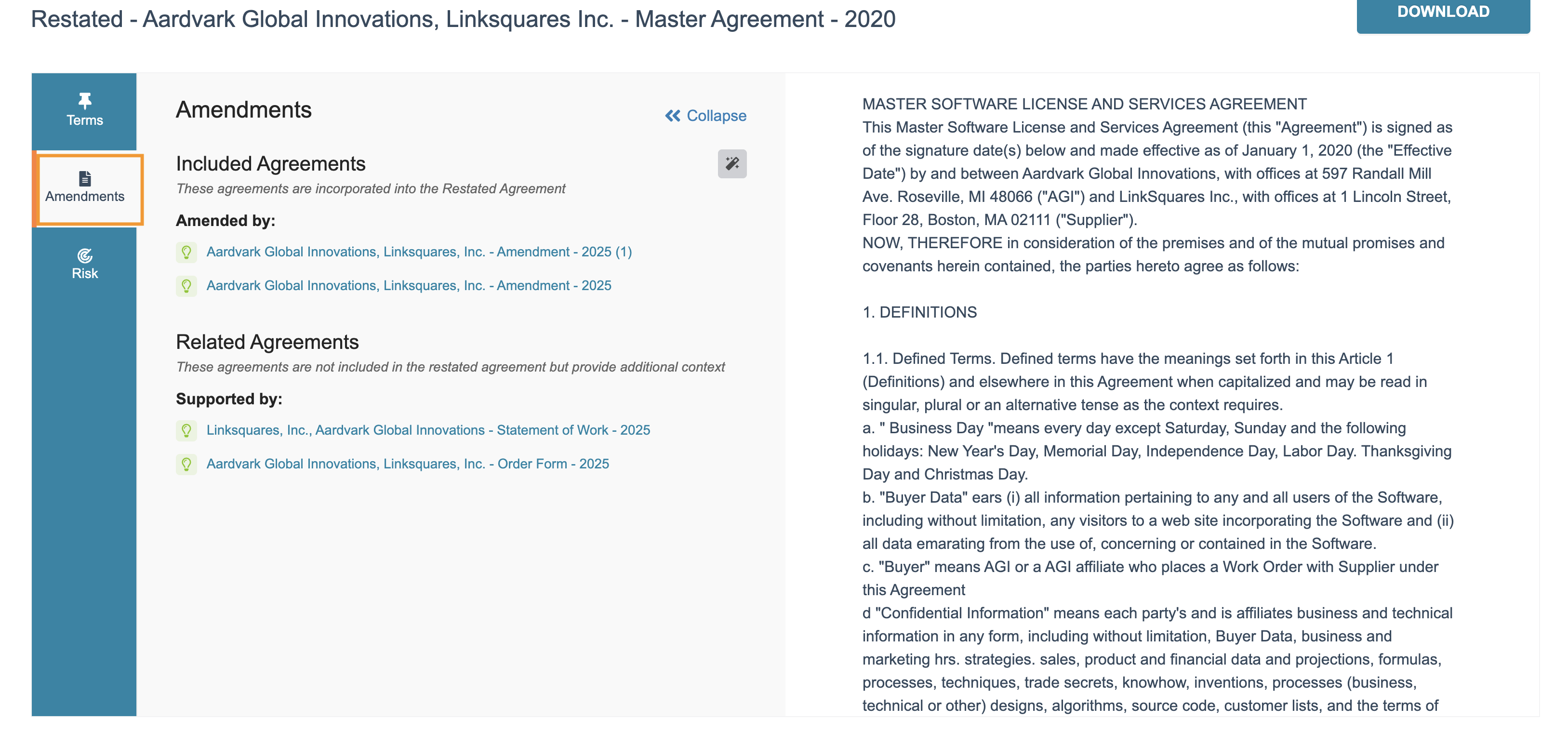 Restated Agreements make it easier to understand how agreements in the Analyze platform are related to each other, ensuring the current understanding of contractual obligations through Smart Value extraction.