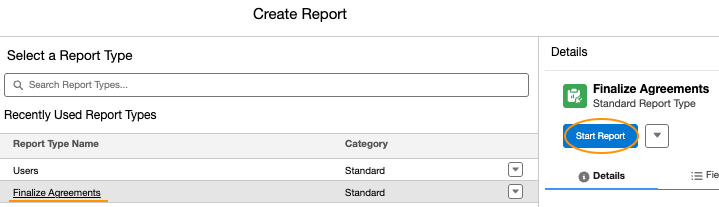 - Report Name: Give it a descriptive name (e.g., “Active Finalize Agreements - All”).