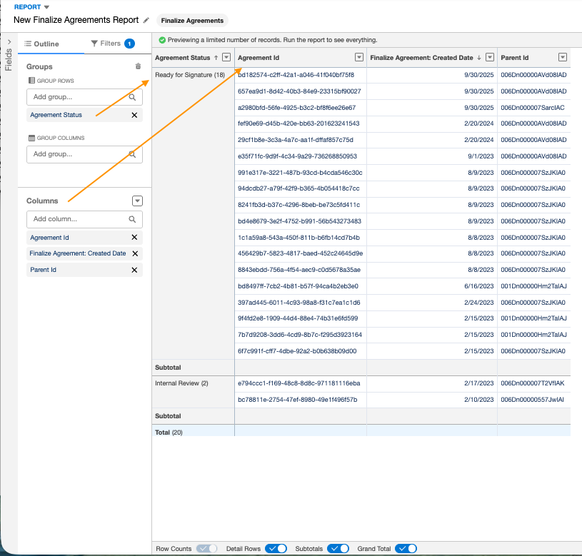 - Group by Opportunity/Account: To see all agreements associated with a specific client or deal.