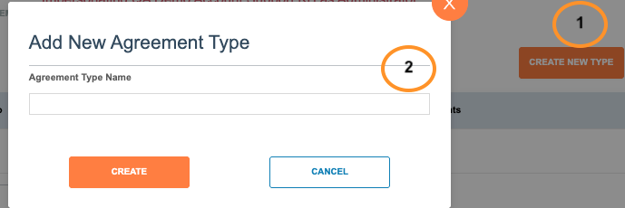 2. Enter your custom Agreement Type in the blank field and choose 'Create'